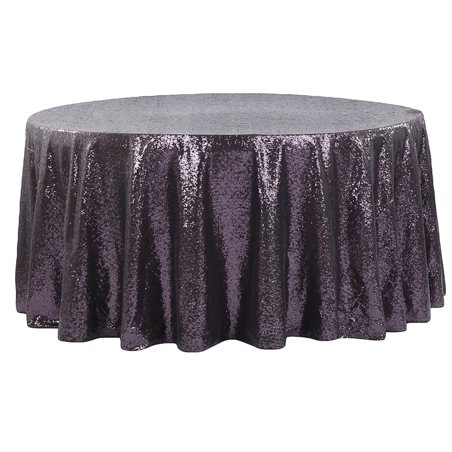 Knock the socks off of all those party-goers with these solid round Glitz Sequin Tablecloths! Whether throwing a dazzling wedding or a boisterous birthday, this Premium glimmering table linen is popular for good reason and now at your disposal should you desire to add a dash of its dazzling opulence. The eggplant/plum tone gives it an especially rich and mysterious feel.Â