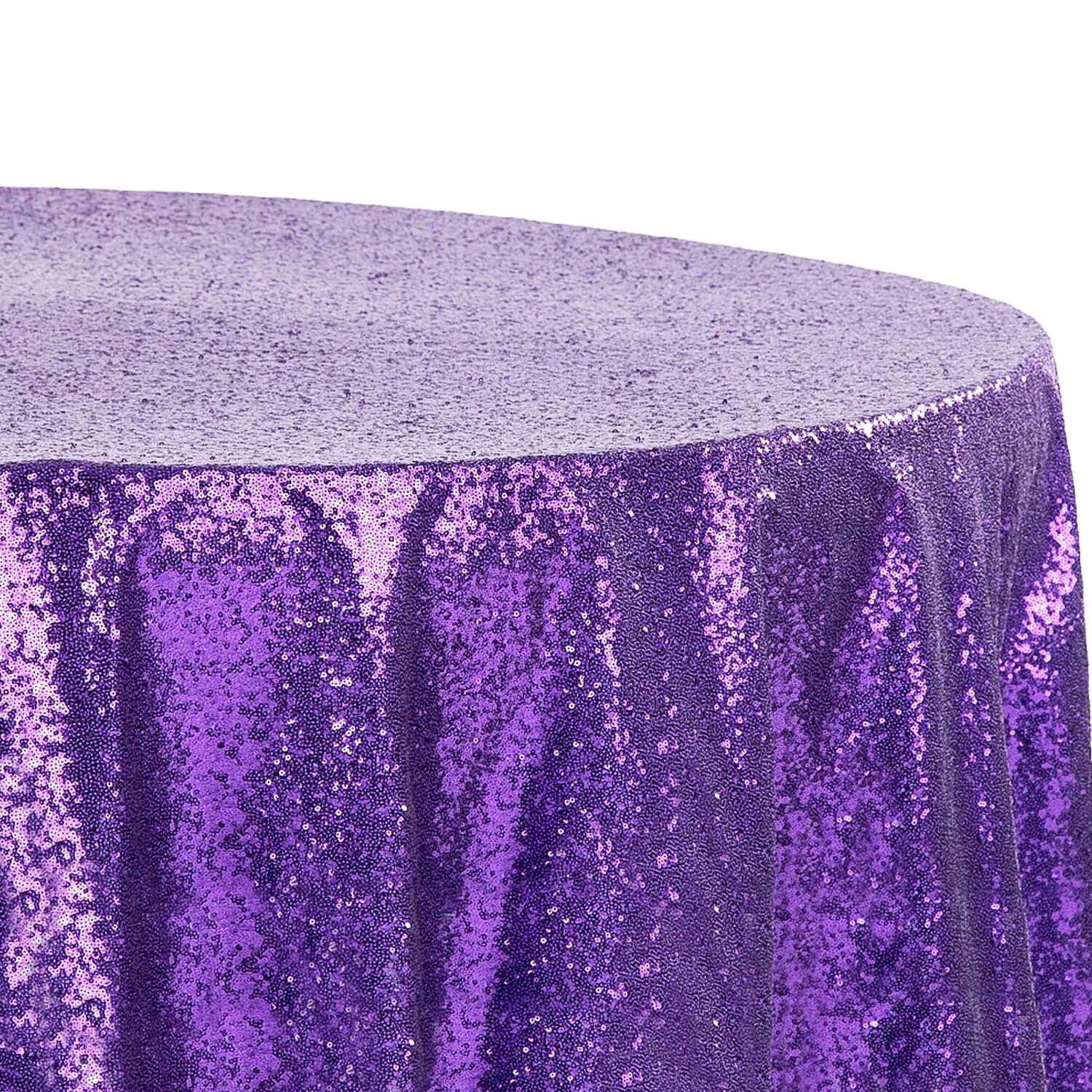 Knock the socks off of all those party-goers with these solid round Glitz Sequin Tablecloths! Whether throwing a dazzling wedding or a boisterous birthday, this Premium glimmering table linen is popular for good reason and now at your disposal should you desire to add a dash of its dazzling opulence. The purple color gives it a particularly funky and flirty edge.Â