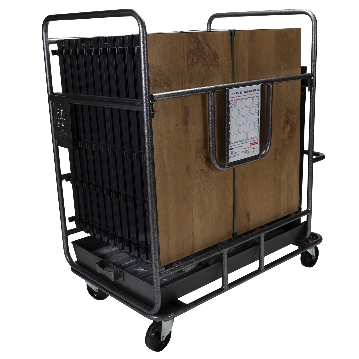 Storage: An engineered cart is available for quick and effortless transport and storage. Each cart holds a 15′ x 15′ (4.57m x 4.57m) complete dance floor and is sized to fit through standard single width doorways. Cart option listed includes enough carts to hold entire floor and components.