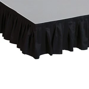 Give your stage a super polished look, for instance, with IntelliStage’s Stage Skirting. Nylon pleated skirts hang with flair and even come with clips. Just use the hook-and-loop tape to attach them to your platform. Finally, with all the madness and stress of production, something easy!Â