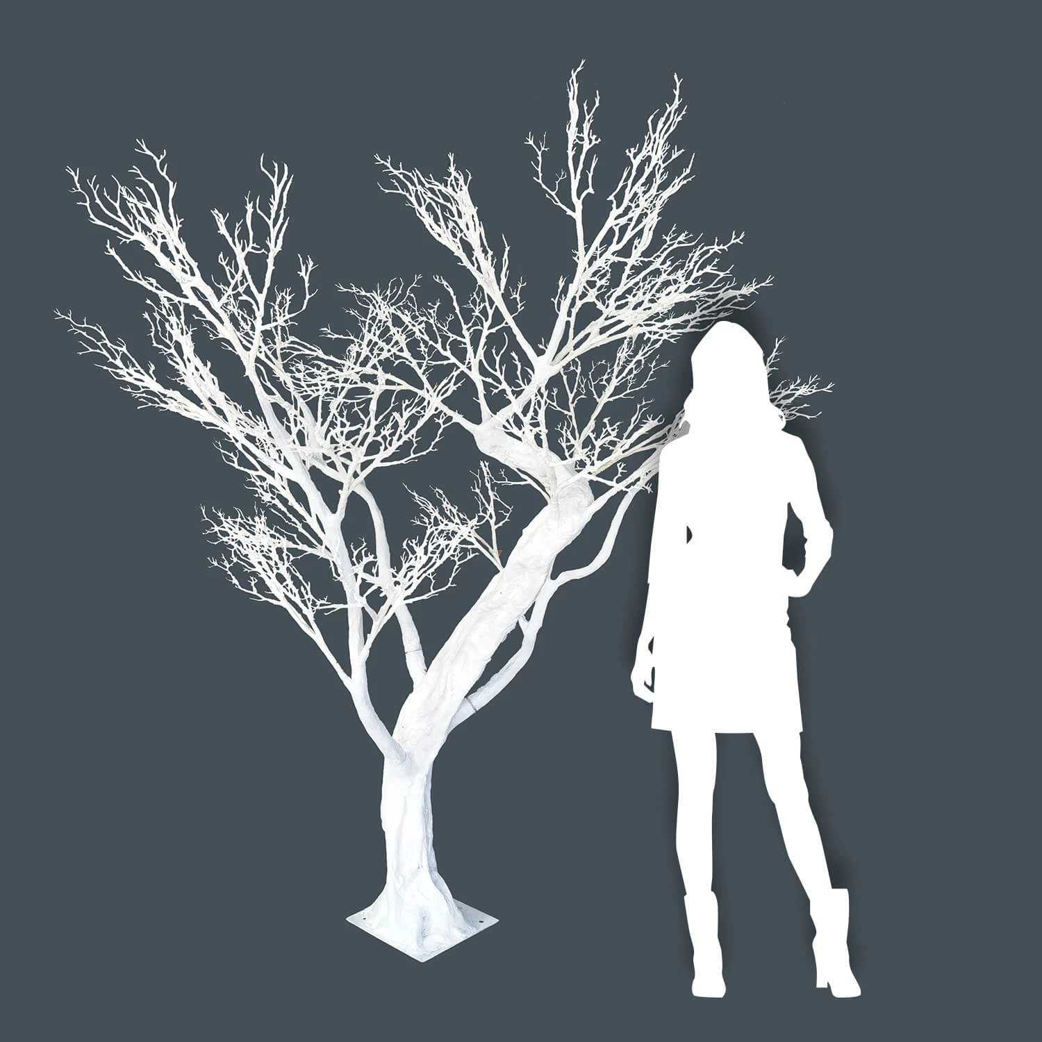 Event Decor Direct’s Event Grand Manzanita Trees are perfect for event designers that want the HUGE impact. With artificial trunk and branches that easily detach you can pack your winter manzanita tree up and take it from event to event with ease. These event trees are build to last! Stunning and durable, these 8ft tall large manzanita trees are the perfect addition to every event planners inventory. Event trees are ideal for intimate designs, special occasions and corporate events.Â