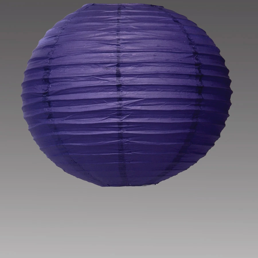 Our 14” purple paper lantern casts a stunning glow on your event. Perfect for indoor decor, our 14” lanterns use LED lights to illuminate your decor. This purple lantern is a basic round foldable lantern.