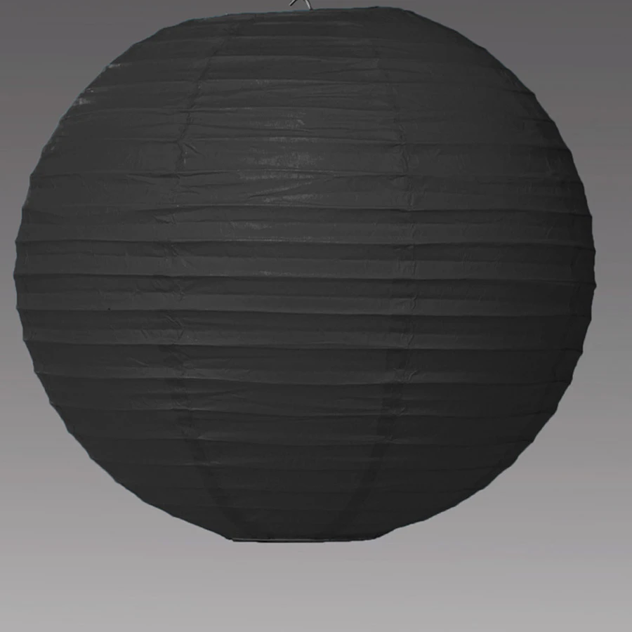 Our 18” black paper lantern casts a stunning glow on your event. Perfect for indoor decor, our 18” lanterns use LED lights to illuminate your decor. This black lantern is a basic round foldable lantern.