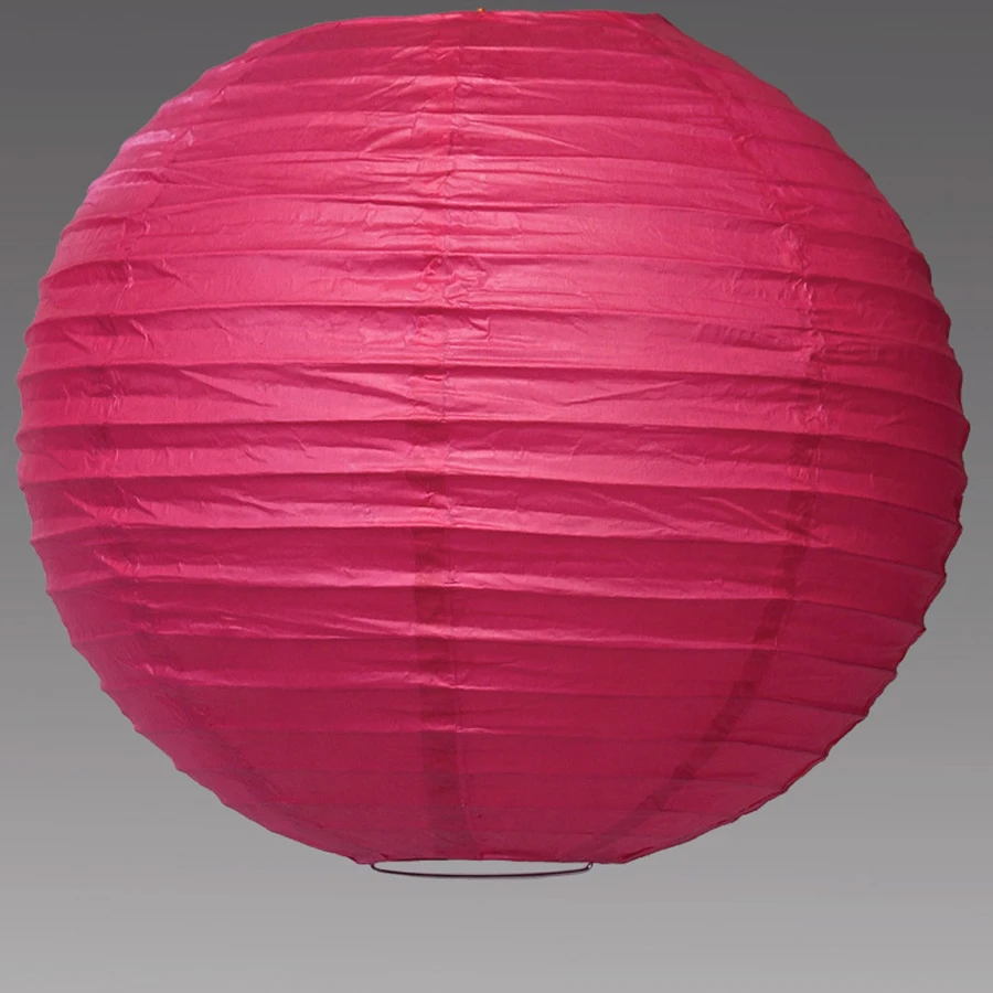 Our 18” fuchsia paper lantern casts a stunning glow on your event. Perfect for indoor decor, our 18” lanterns use LED lights to illuminate your decor. This fuchsia lantern is a basic round foldable lantern.