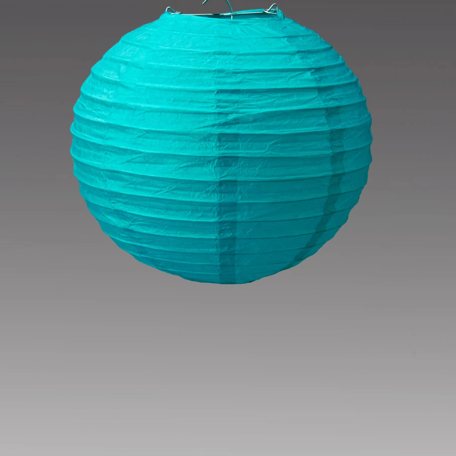 Our 8” aqua paper lantern casts a stunning glow on your event. Perfect for indoor decor, our 8” lanterns use LED lights to illuminate your decor. This aqua lantern is a basic round foldable lantern.