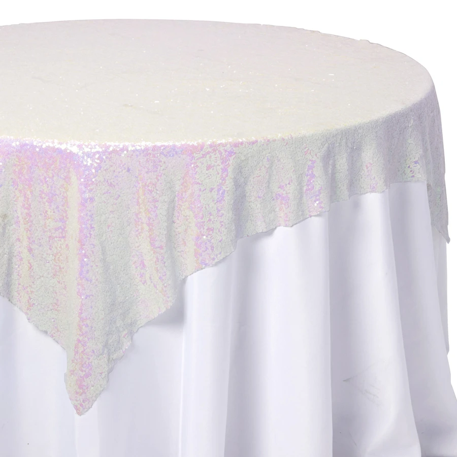 Sequin Overlay 72″ x 72″ –Â White Iridescent