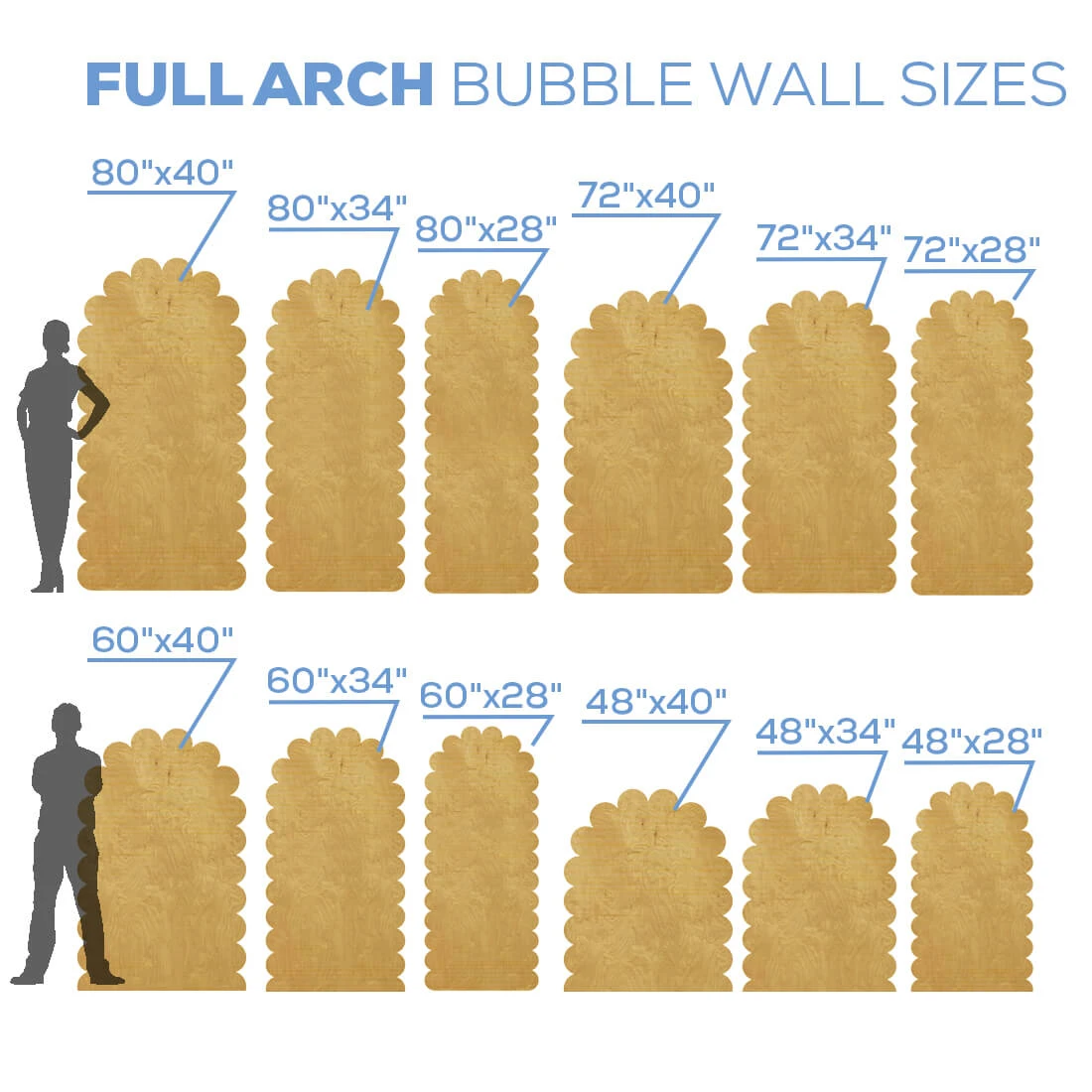 Our custom-made wood panels are made from ½ birch plywood (except for Ripple panels are made with ¾ MDF). Each collapsible panel has additional supports at the base and middle where the panel folds in half.