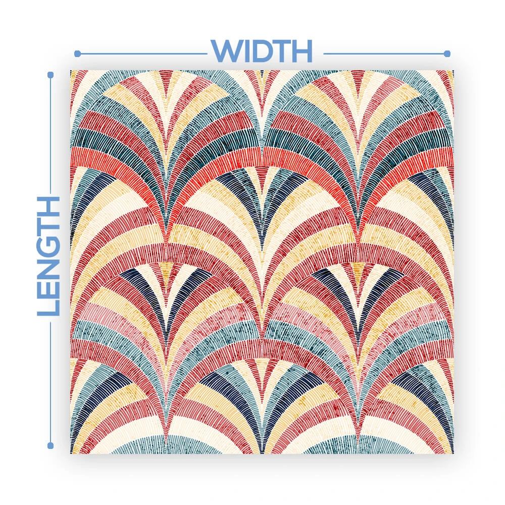 The width of the vinyl is 54″. We will cut the total length based on the size of your dance floor. Floors will come on a single roll requiring the installer to cut each row at design cutlines. These cut lines are printed on the design to make it easy!