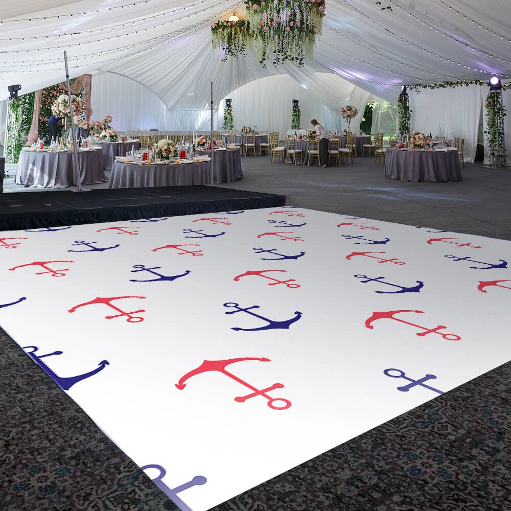 This custom size dance floor wrap will transform your venue! Our Anchor design belongs to our “Boys Birthday” print designs for your most upscale events.Â