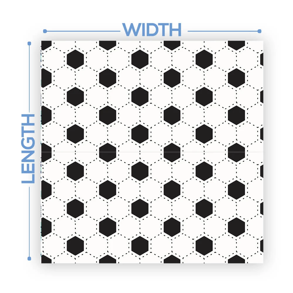 The width of the vinyl is 54″. We will cut the total length based on the size of your dance floor. Floors will come on a single roll requiring the installer to cut each row at design cutlines. These cut lines are printed on the design to make it easy!
