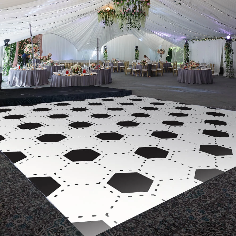 This custom size dance floor wrap will transform your venue! Our Soccer Scene design belongs to our “Boys Birthday” print designs for your most upscale events.Â