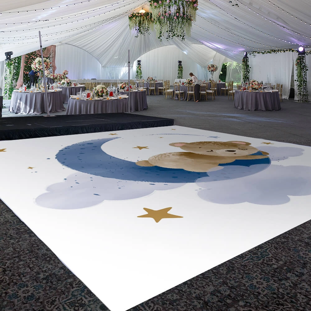 This custom size dance floor wrap will transform your venue! Our Sweet Dreamz design belongs to our “Boys Birthday” print designs for your most upscale events.Â