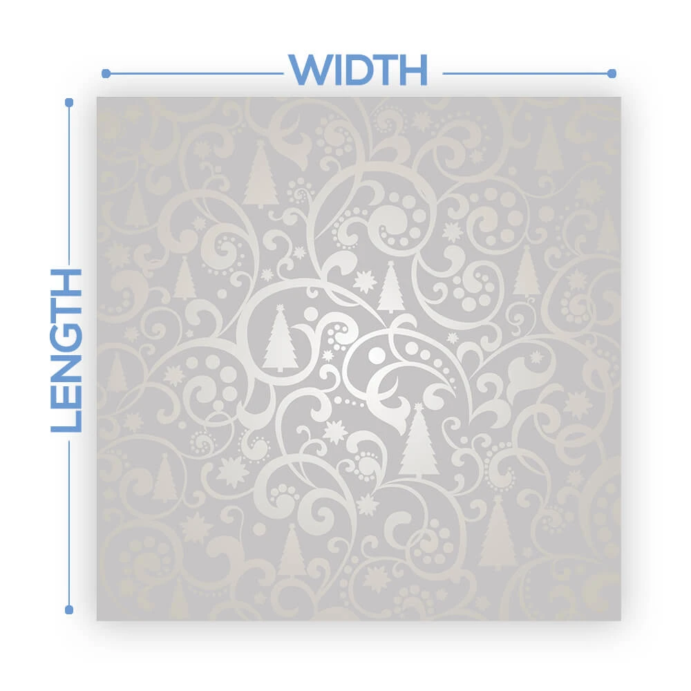 The width of the vinyl is 54″. We will cut the total length based on the size of your dance floor. Floors will come on a single roll requiring the installer to cut each row at design cutlines. These cut lines are printed on the design to make it easy!