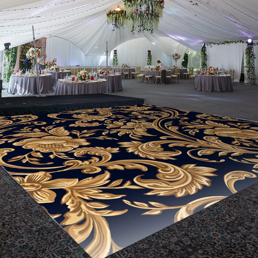 This custom size dance floor wrap will transform your venue! Our Royal Affair design belongs to our “Classical” print designs for your most upscale events.Â