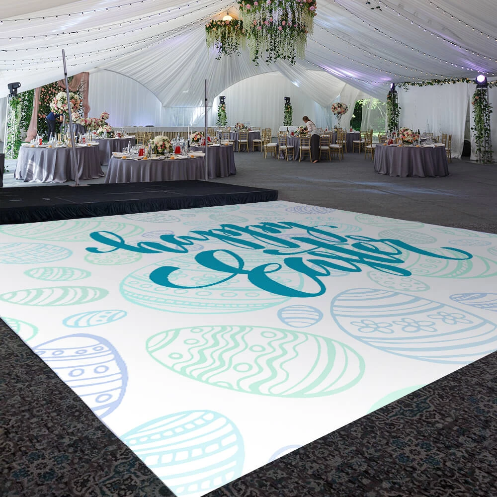 This custom size dance floor wrap will transform your venue! Our Blue Easter design belongs to our “Easter Day” print designs for your most upscale events.Â
