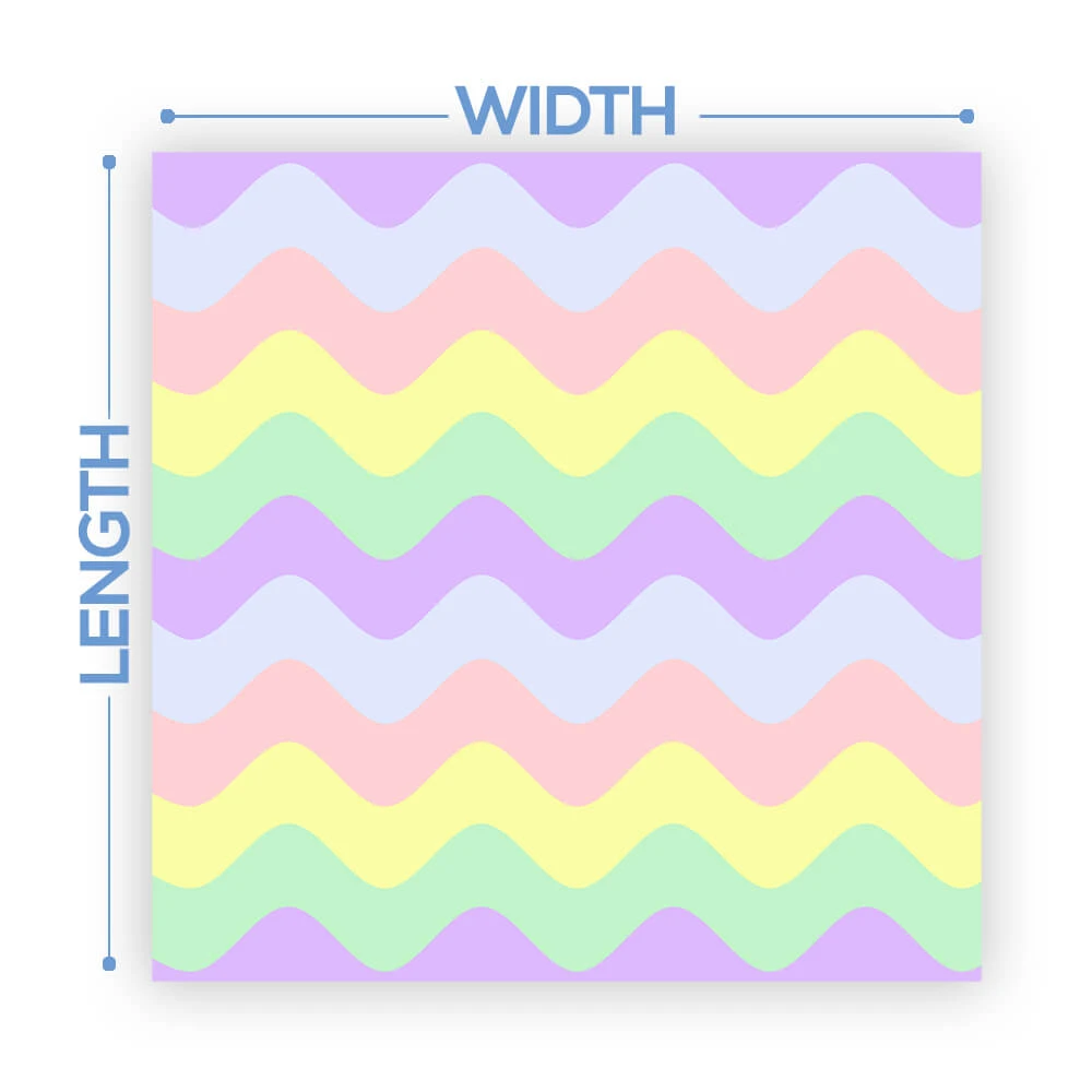 The width of the vinyl is 54″. We will cut the total length based on the size of your dance floor. Floors will come on a single roll requiring the installer to cut each row at design cutlines. These cut lines are printed on the design to make it easy!