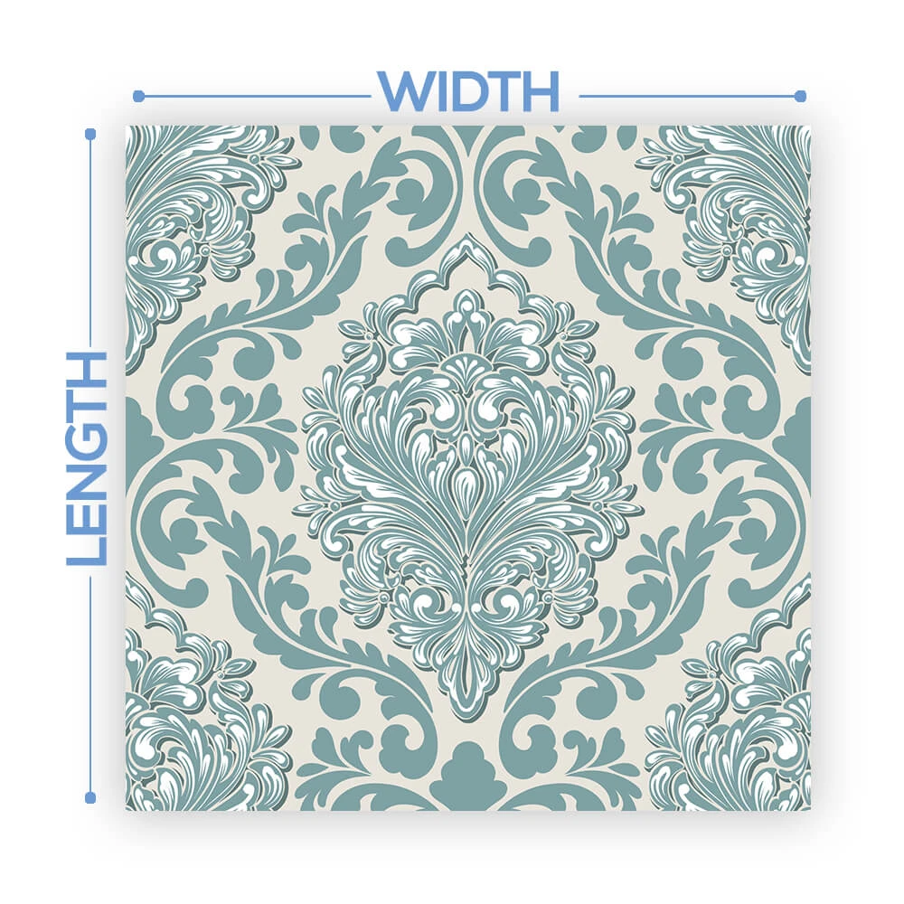 The width of the vinyl is 54″. We will cut the total length based on the size of your dance floor. Floors will come on a single roll requiring the installer to cut each row at design cutlines. These cut lines are printed on the design to make it easy!