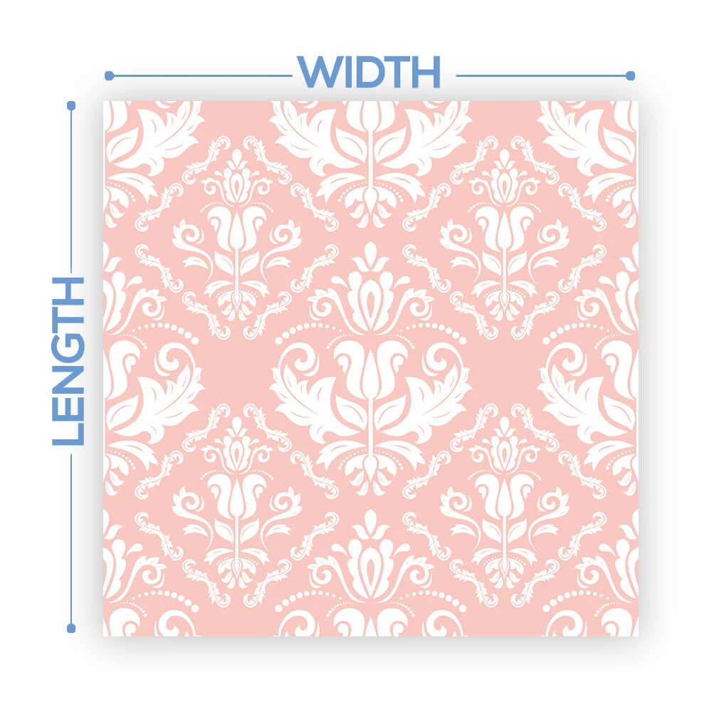 The width of the vinyl is 54″. We will cut the total length based on the size of your dance floor. Floors will come on a single roll requiring the installer to cut each row at design cutlines. These cut lines are printed on the design to make it easy!