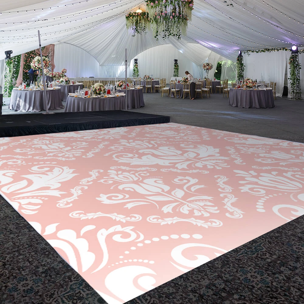 This custom size dance floor wrap will transform your venue! Our Belle design belongs to our “Fairytale” print designs for your most upscale events.Â