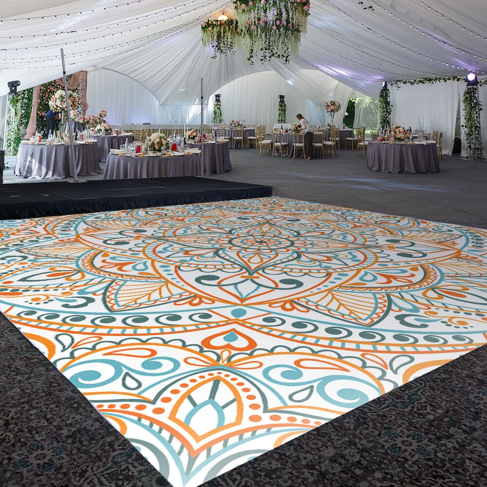 This custom size dance floor wrap will transform your venue! Our Mandala Ornate design belongs to our “Geometric” print designs for your most upscale events.Â