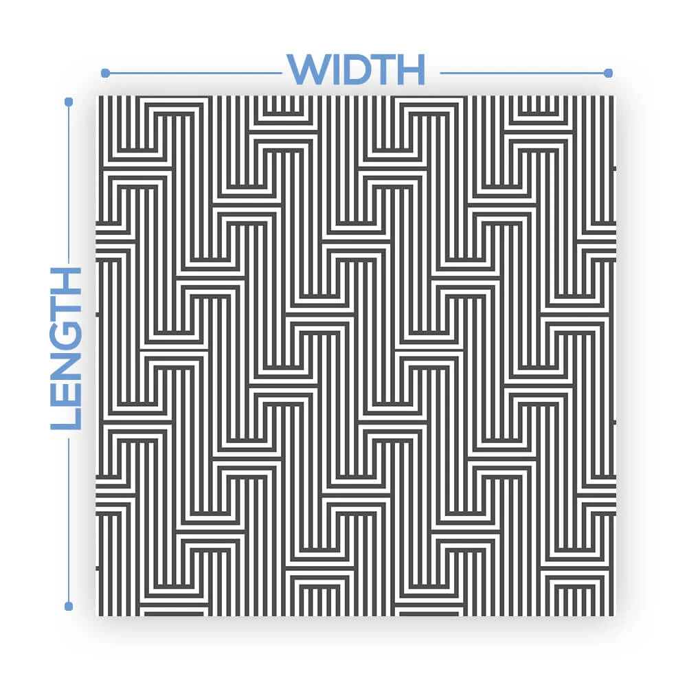The width of the vinyl is 54″. We will cut the total length based on the size of your dance floor. Floors will come on a single roll requiring the installer to cut each row at design cutlines. These cut lines are printed on the design to make it easy!