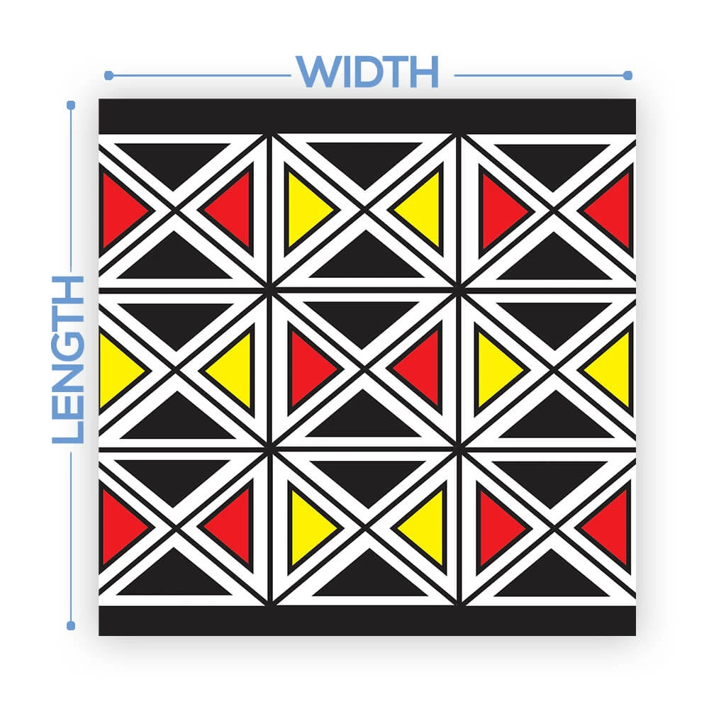 The width of the vinyl is 54″. We will cut the total length based on the size of your dance floor. Floors will come on a single roll requiring the installer to cut each row at design cutlines. These cut lines are printed on the design to make it easy!
