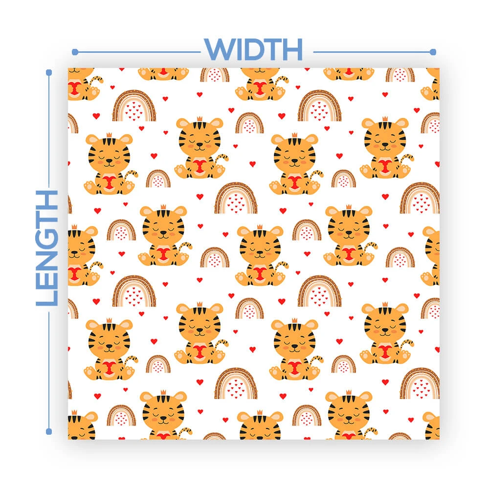 The width of the vinyl is 54″. We will cut the total length based on the size of your dance floor. Floors will come on a single roll requiring the installer to cut each row at design cutlines. These cut lines are printed on the design to make it easy!