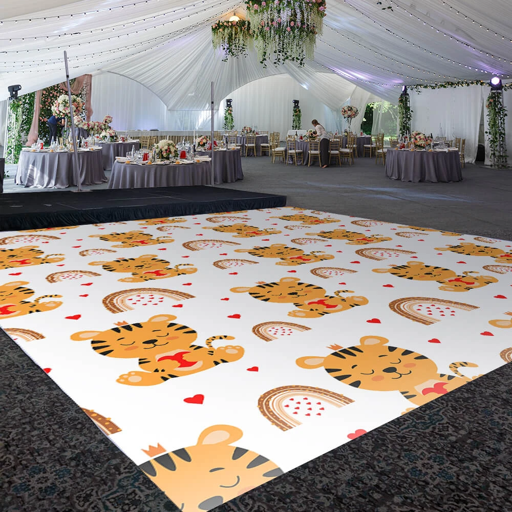 This custom size dance floor wrap will transform your venue! Our Safari Dream design belongs to our “Girls Birthday” print designs for your most upscale events.Â