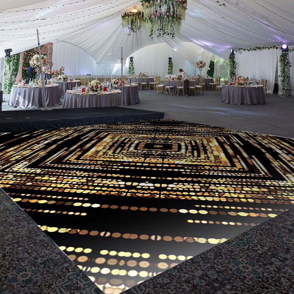This custom size dance floor wrap will transform your venue! Our Golden Moment design belongs to our “New Year’s Day” print designs for your most upscale events.Â