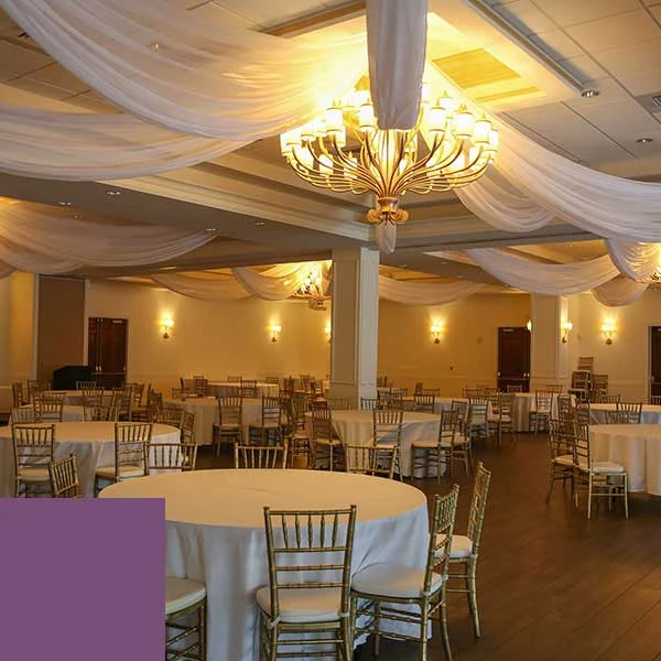 Our prefabricated kits allow you to set up full ceiling draping in just a few minutes, all from the ground – no ladder needed! With pre-sewn grommets and use of our magnet kit, ceiling draping has never been so elegant and easy to set up!