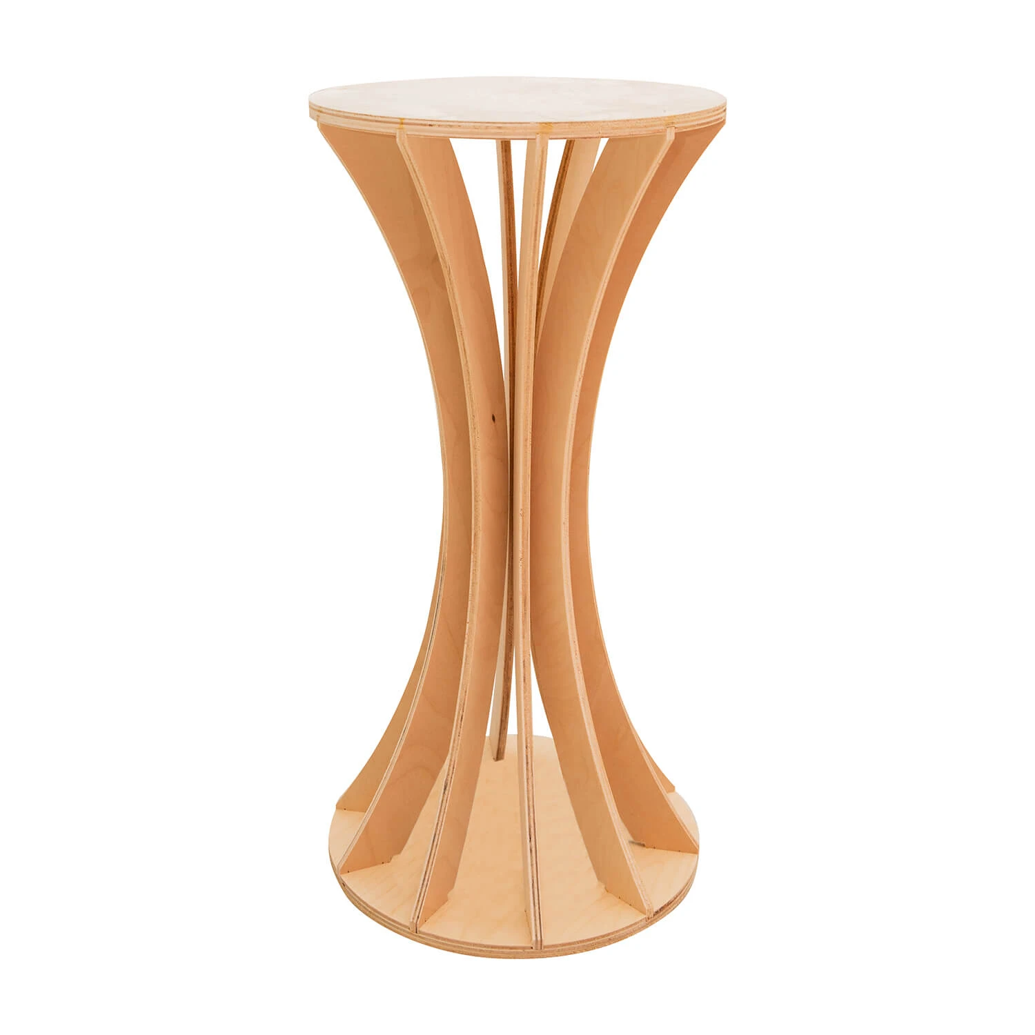 Our custom made wood Plinth Pedestals are made from 3/4 and 1/2 birch plywood.  This style has 10 wood slats.