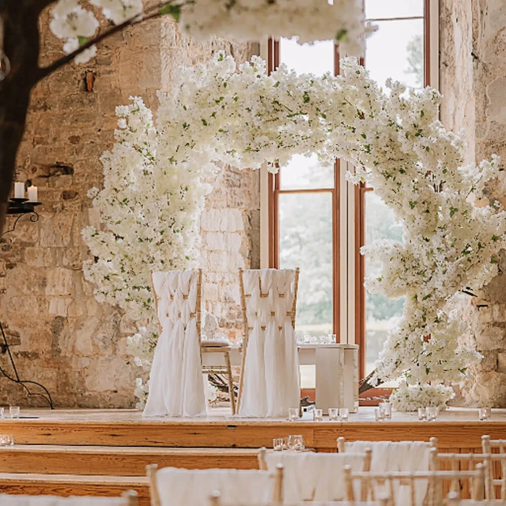 Event Decor Direct’s Event floral circle backdrop is the best quality on the market made for repeated use, these circles are solid and easy to set up. With artificial white floral branches that easily detach you can pack your tree up and take it from event to event with ease. This circle arch are build to last! Stunning and durable, these tree are the perfect addition to every event planners inventory. Floral backdrop circle arches are ideal for intimate designs, special occasions, weddings, photobooths and corporate events.Â