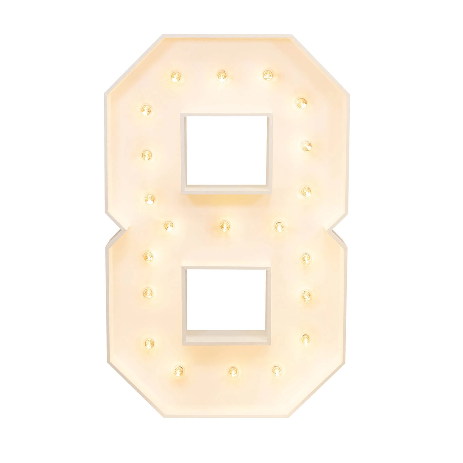 Marquee Letters/Numbers Bulbs are warm white, 5 watt, LED, Edison style, shatter proof with E12 base. Each letter connects to outlet and are able to daisy chain together for one single connection.