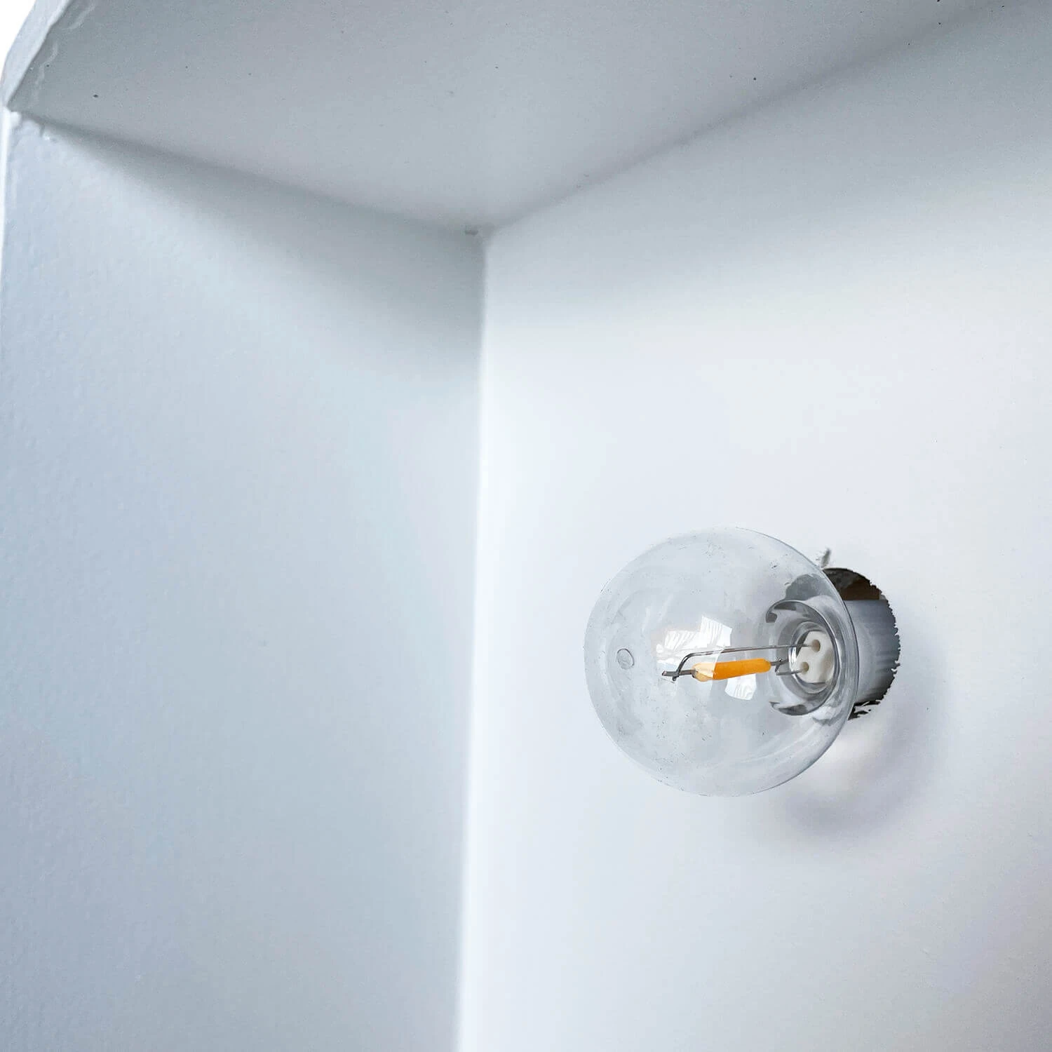 Materials: Warm light LED Edison Style Bulbs, 1/2 pine (painted White)