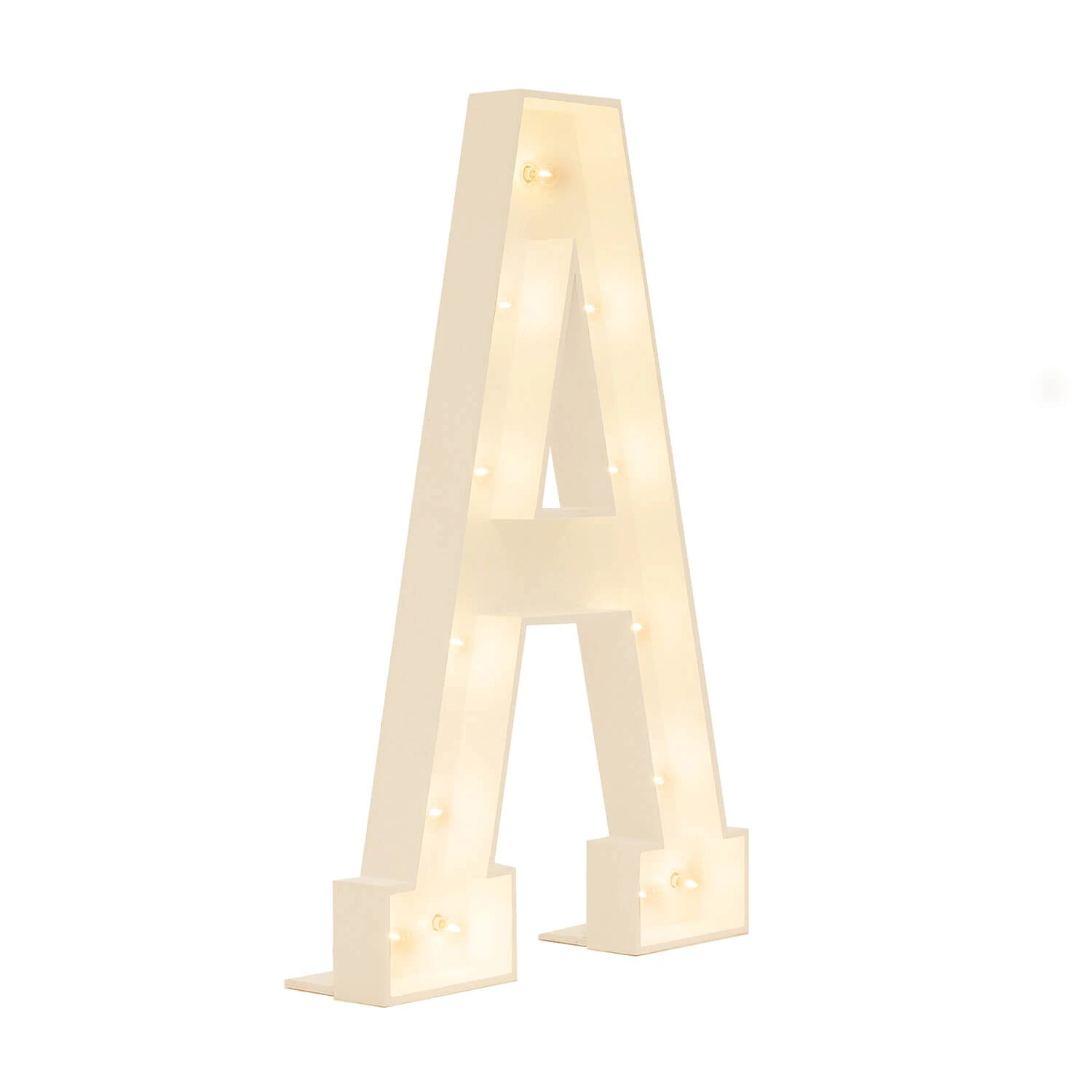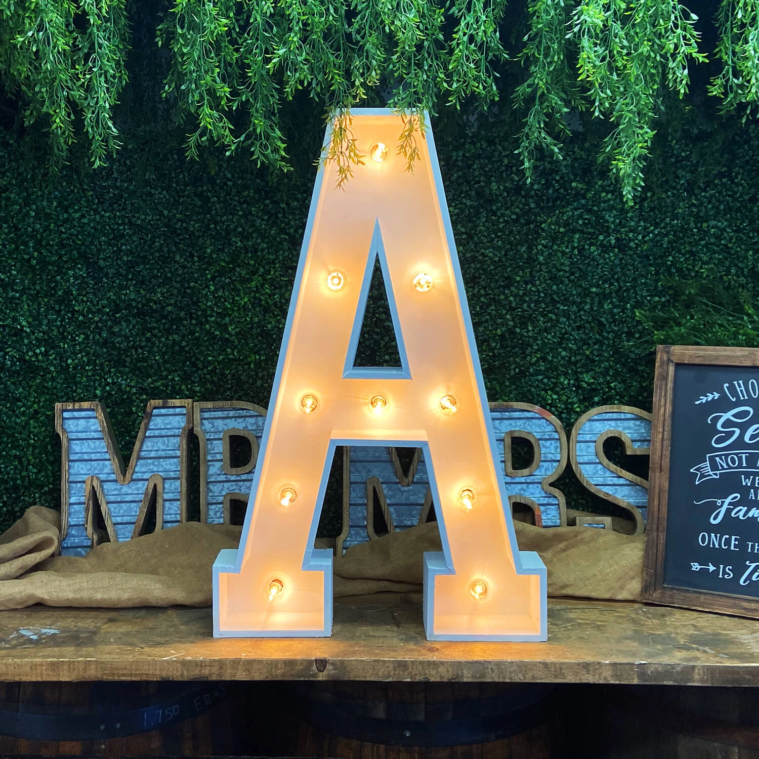 Marquee Letters/Numbers Bulbs are warm white, 5 watt, LED, Edison style, shatter proof with E12 base. Each letter connects to outlet and are able to daisy chain together for one single connection.