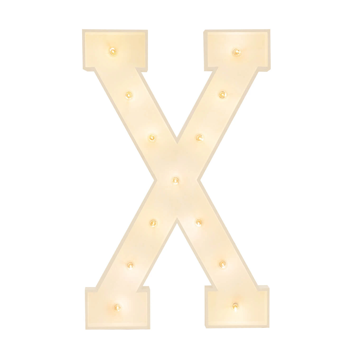 Marquee Letters/Numbers Bulbs are warm white, 5 watt, LED, Edison style, shatter proof with E12 base. Each letter connects to outlet and are able to daisy chain together for one single connection.