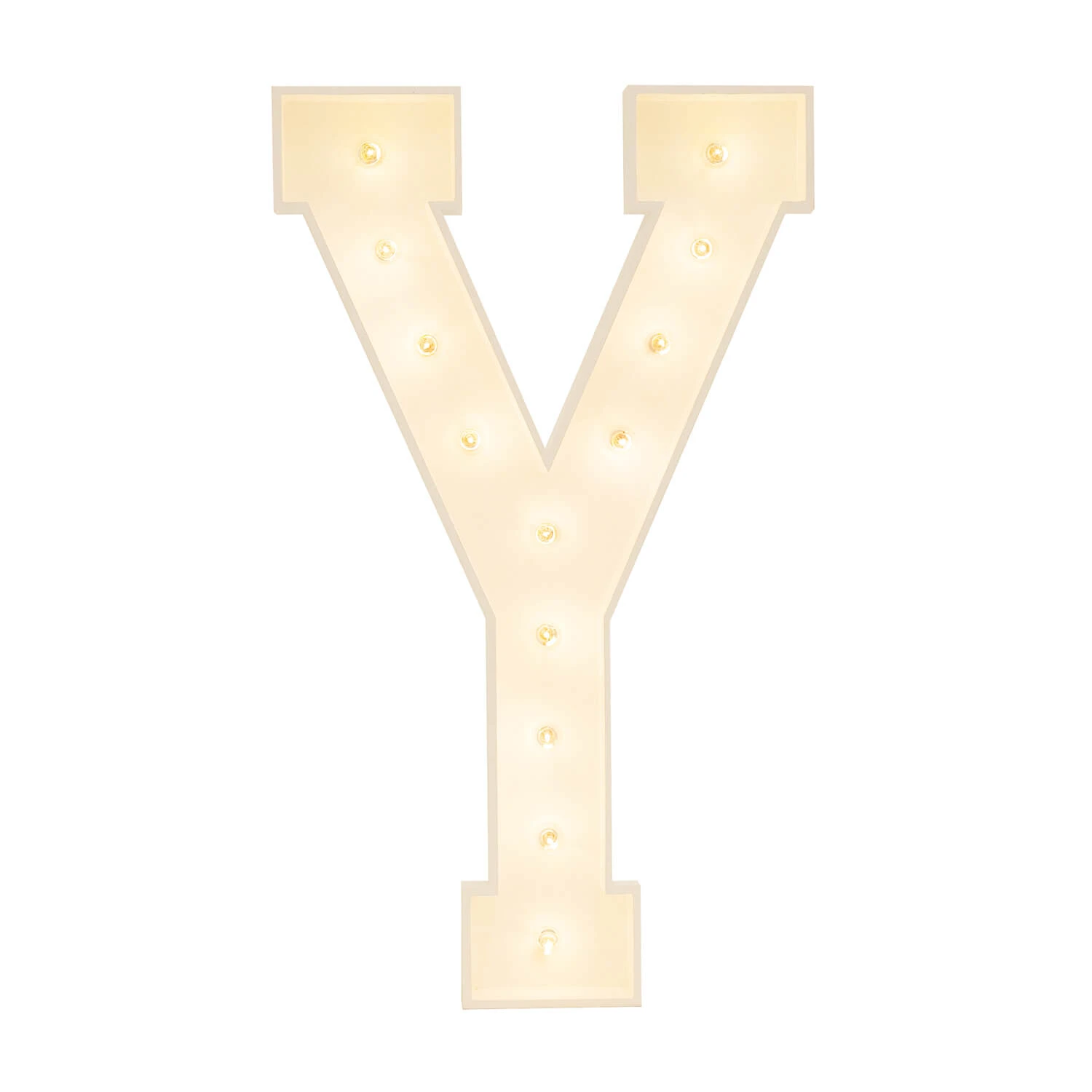 Marquee Letters/Numbers Bulbs are warm white, 5 watt, LED, Edison style, shatter proof with E12 base. Each letter connects to outlet and are able to daisy chain together for one single connection.